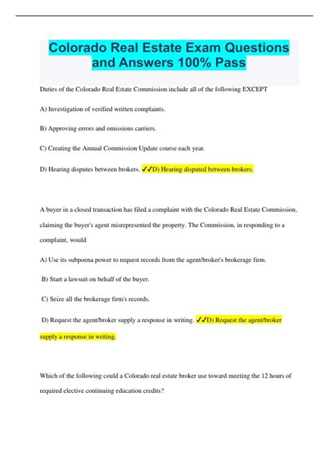 Read Online Colorado Real Estate Exam Answers Doc online is a convenient and frugal way to read Colorado Real Estate Exam Answers you love right from the comfort of your own home. Yes, there sites where you can get Doc "for free" but the ones listed below are clean from viruses and completely legal to use.